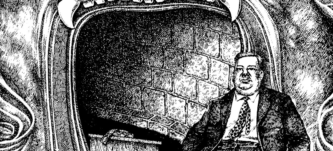 Cuyahoga Community College had a large collection of archival photography, and they wanted to put together a traveling exhibit of photos paired with artwork inspired by them. The photo I used was of this man sitting on a stool. The rest I built around him, based on the first lines of the Bruce Springsteen song, “Tunnel of Love”: